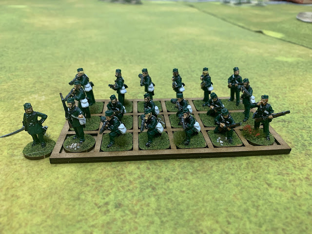 This is a bit of a small supernumerary unit that I'd done up for Ronin games for use as legation guards, hence the 2/20th which was the first of the Yokohama garrison battalions. I might buff it out to a full size force at some stage, but given how many troops I have already... probably not.